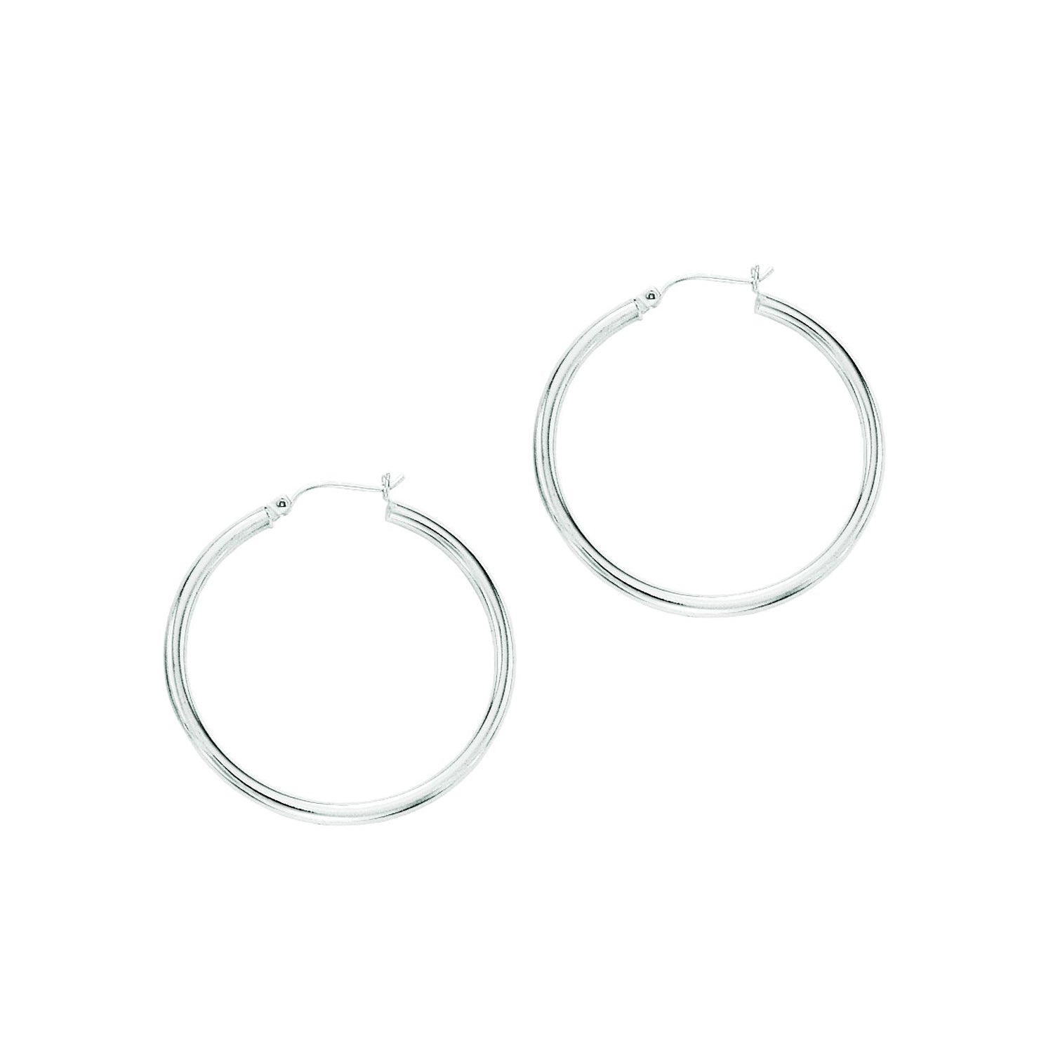 Ritastephens 14K White Gold Tubular Hoop Earrings – Elegant 40x2mm Real Gold Hoops, Classic Sleek Design, Premium Quality, Fine White Gold Jewelry, Timeless & Versatile Style