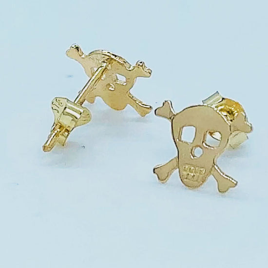 14K Yellow Gold Skull & Crossbones Stud Earrings